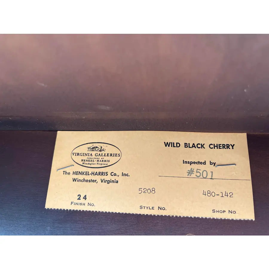 Made by US-based Henkel Harris, one of the finest furniture manufacturers in the States entirely of Wild Black Cherry wood. From the early 1970s, this coffee table remains in excellent shape. A Queen Anne style with other traditional components, this table features two drop leaves to transform from oval to rectangular shape. Solid and sturdy, with dark cherry wood grain and beautiful aesthetic.