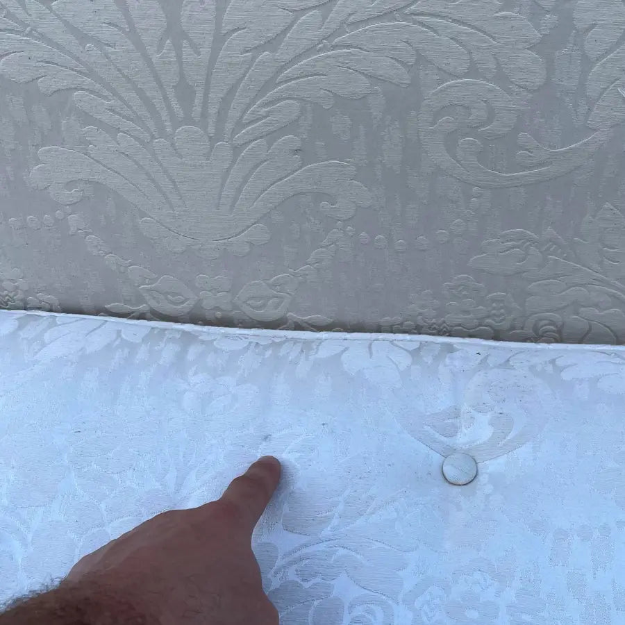 In fantastic overall condition. One small spot is evident on the seat cushion and minor discoloration in areas as seen in the photos. Overall fantastic condition.