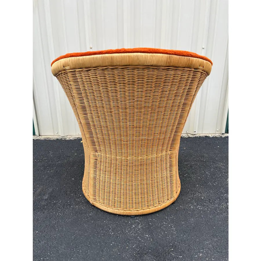 Vintage Sculptural Rattan Barrel Chairs in Original Orange Chenille- A Pair